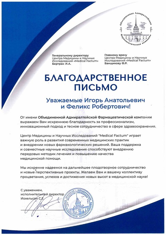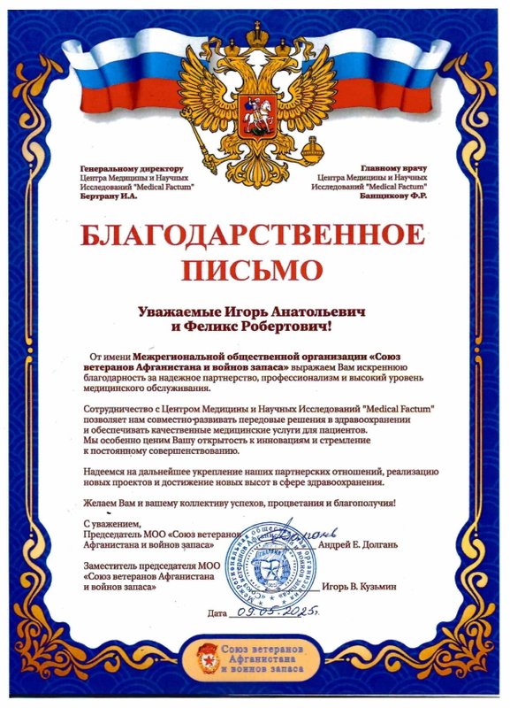 Феликс Робертович ведет личный раздел «Блог главного врача» на сайте клиники, пишет статьи и заметки для нашей группы в ВКонтакте и всегда готов ответить на вопросы пациентов и членов их семей.